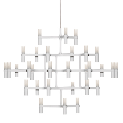 ドイツ出身のマルクス・イェスとユルゲン・ラウブによるデザインスタジオ、jehs+laubによるシャンデリア。古き良きキャンドル・シャンデリアの現代的な解釈により、新たなモダンデザインを提案しています。30灯のMAJORは空間の印象を変えるほどの存在感。12灯タイプのMINORは、ダイニングテーブルとも合わせやすい手頃なサイズ。5つのカラー展開の中から、お好みの質感とカラーを選ぶことができます。