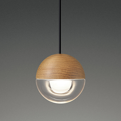 オーブは、木と無機質な透明ガラスに分割されたカプセルトイのようなデザインのペンダント。住宅やオフィス、商業施設などに、集合あるいは点在し光を放ち、空間に相応しい照明となります。