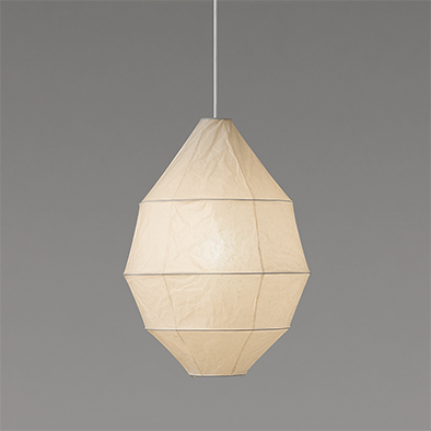 日本の伝統工芸品であり、照明器具としてあるいは祭礼や儀式の道具として日本人の生活様式に溶け込んできた「提灯」。その伝統と岐阜提灯・美濃和紙の技、照明機能を内包した「オブジェ」として再構築・再解釈された「提灯」の新たな形です。ショクは、伝統的な球形の提灯のウエストをシェイプさせたユニークな意匠が目を引きます。