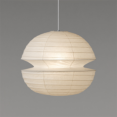 日本の伝統工芸品であり、照明器具としてあるいは祭礼や儀式の道具として日本人の生活様式に溶け込んできた「提灯」。その伝統と岐阜提灯・美濃和紙の技、照明機能を内包した「オブジェ」として再構築・再解釈された「提灯」の新たな形です。ショクは、伝統的な球形の提灯のウエストをシェイプさせたユニークな意匠が目を引きます。