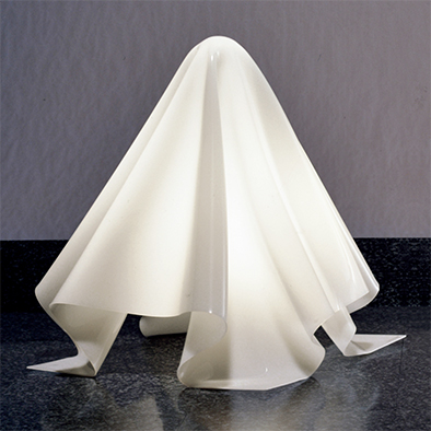 Kシリーズは、1972年にデザインされたものを後年YAMAGIWAが製品化した倉俣史朗を代表する製品の一つです。ハンカチをふわりと摘み上げたその一瞬を形にしたアクリル製のセードは決して機械による生産は出来ず手作業によって作られています。一点一点異なる表情を持つドレープから拡がる光が空間を優しく包みます。