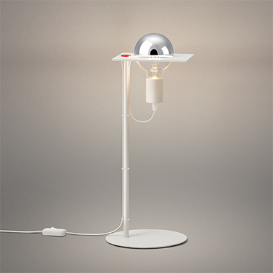 現在、小さなLED電球の普及により照明器具のデザインは、電球の大きさや形をまったく考慮に入れる必要がない造形の遊びとなっている。それに対し、60年代の照明デザインのマスターピース、例えばアキーレ・カスティリオ―ニのトイオは自動車のヘッドランプのシンプルな形をそのまま生かしたデザインである。この1983年にデザインした作品は、そのカスティリオ―ニの流れを汲んでいる。ミラーボール球のハーフ・ミラーという反射面がある特色を使い、単純にその置き方を変えることにより光の方向性を調整できるようになり、さまざまな演出が可能である。 − 坂 茂