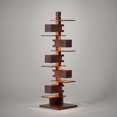 フランク・ロイド・ライトは、間接光の美しさに魅了され、自身が設計した米国ウィスコンシン州のタリアセンの劇場のために、木製のボックスと遮光板で構成したペンダント照明をデザインして以来、さまざまな空間にあわせて、光の彫刻のように、同様のデザインを応用しました。タリアセンは当時、置かれる空間に合わせ最適な大きさで作られ、さらに、それぞれの土地で地元の木材を使用していました。現在はチェリー、ウォルナット、チェスナット、オークの木材と3つのサイズバリエーションが揃います。