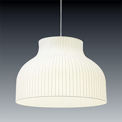ベンジャミン・ヒューバートによるストランドは、シェードを透過した拡散光と上方の開口部からの光が空間に広がりを感じさせ、大きく開いた下方の開口部により十分な照度を約束します。シェードは特殊なプラスチックをスチールのストラクチャーにスプレーし成型。どこか日本的でもあり使用空間が広がります。