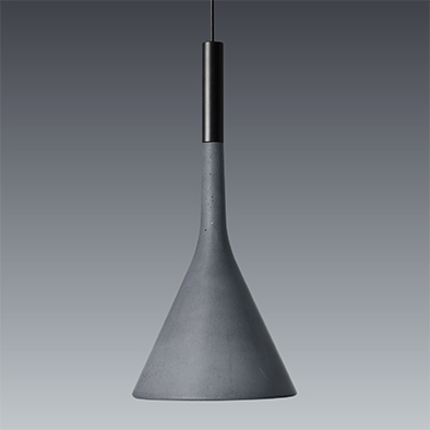 アプロムは、スレンダーでかつ洗練されたフォルムとは対照的にコンクリートが持つ重厚さと荒々しさを備えたペンダントライトです。シェードの薄さや軽さ、手触りの良い表面仕上げは、コンクリートという素材に対する深い造詣を持つイタリアの職人の手作業により実現しました。シェード表面の気泡が一つひとつ異なる表情を生みだします。