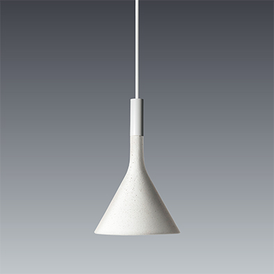 アプロムは、スレンダーでかつ洗練されたフォルムとは対照的にコンクリートが持つ重厚さと荒々しさを備えたペンダントライトです。シェードの薄さや軽さ、手触りの良い表面仕上げは、コンクリートという素材に対する深い造詣を持つイタリアの職人の手作業により実現しました。シェード表面の気泡が一つひとつ異なる表情を生みだします。