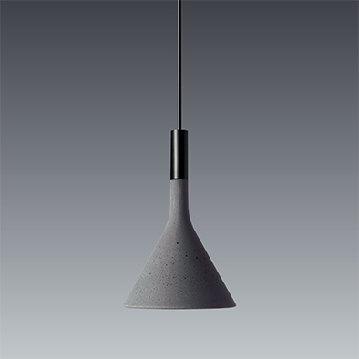 アプロムは、スレンダーでかつ洗練されたフォルムとは対照的にコンクリートが持つ重厚さと荒々しさを備えたペンダントライトです。シェードの薄さや軽さ、手触りの良い表面仕上げは、コンクリートという素材に対する深い造詣を持つイタリアの職人の手作業により実現しました。シェード表面の気泡が一つひとつ異なる表情を生みだします。