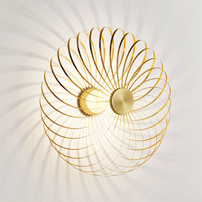 スピログラフで描いた図形を立体成型したようなフォルムが特徴のスプリング。光がステンレス製のリボンの間をすり抜け、幻想的な影を映し出します。