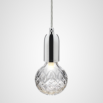 クリスタルバルブは、照明器具本体への装飾ではなく、光を放つ電球自体に繊細な切子という技術を加えることで、工業製品から華麗な装飾品へと進化させたコレクションです。ウイスキーグラスなどに施されている模様からヒントを得、一つ一つ伝統的な技法でハンドカットされています。
