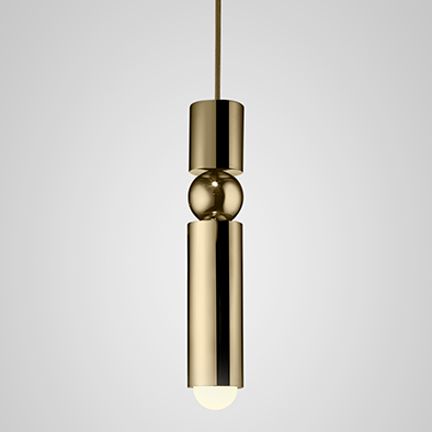 フルクラムは、円柱と球体で構成されたスリムなデザインが特徴的なコレクションです。まるで彫刻作品のようなデザインは、先端に露出する電球が、本体のシルエットとシンメトリーとなることで、連続的な繋がりの美しさを表現します。