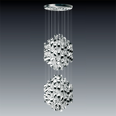 スパイラル・シリーズは、1970年のケルン国際家具見本市における伝説のインスタレーション「ヴィジョナ2」のために、ヴァーナー・パントンが1969年にデザインしたもので、彫刻的要素の高い作品です。螺旋状にねじられたアクリル板が作り出す、エレガントな煌きが印象的です。斬新なデザインのようで、クラシカルなクリスタルビーズ・シャンデリアのスタイルを採用しています。