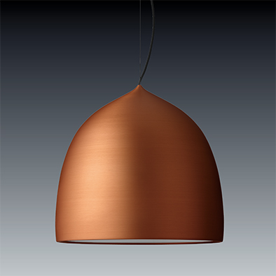 ガムフラテーシがサスペンスをデザインした際のインスピレーションは動いている物を物理的な形で表現するというものでした。ランプの形状は、物理的な力による基本的な動作である引っ張ることを表わしており、シェード上部の先端の形に上方向への張力を見ることができます。自然な曲線から成る、オーガニックな形状が特徴のランプです。付属のディフューザーを取り付けることにより、光を集中させ、まぶしさを緩和し、エレガントな光の幻想を演出します。
