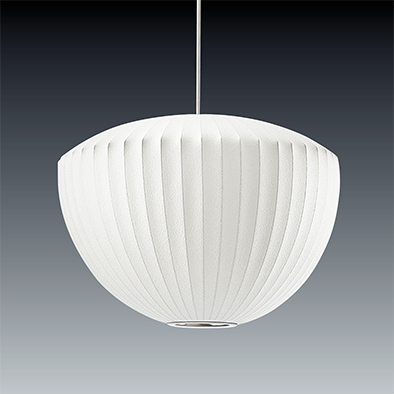 ニューヨーク近代美術館(MoMA)のコレクションとなっているバブルランプは、1952年ジョージ・ネルソンがデザインしました。細いスチールフレームに特殊なプラスチックをスプレーでコーティングする製作工程は当時と変わらず、シンプルなフォルムから幻想的な光を照らし出すその美しさは、ミッドセンチュリーデザインのファンのみならず、世界中のユーザーを半世紀経った現代も魅了し続けています。
