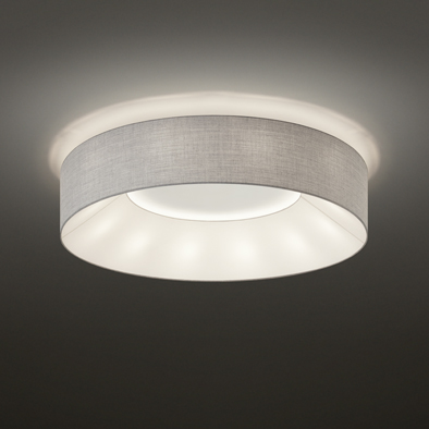 多様化する働き方に合わせて、オフィスの形態も変わりつつあります。そのような変化に合わせて照明も、今までの均一なベースライトから、フレキシブルで魅力的なデザインが求められています。ONIBUSは、従来住宅用であったデコラティブなシーリングライトを大型化し、シンプルかつ、圧迫感のない形状にリデザインした新しいモデルです。外周には、デンマークを代表する上質なテキスタイル(クヴァドラ社・Remix)を採用しています。