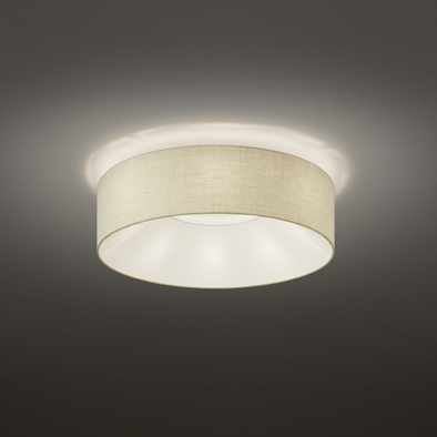多様化する働き方に合わせて、オフィスの形態も変わりつつあります。そのような変化に合わせて照明も、今までの均一なベースライトから、フレキシブルで魅力的なデザインが求められています。ONIBUSは、従来住宅用であったデコラティブなシーリングライトを大型化し、シンプルかつ、圧迫感のない形状にリデザインした新しいモデルです。外周には、デンマークを代表する上質なテキスタイル(クヴァドラ社・Remix)を採用しています。