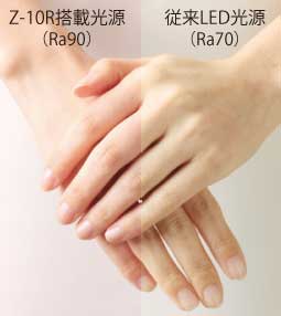 Z-10RのLEDには演色評価数においてRa90以上の基準をクリアした高演色性能の素子を採用しています。近年注目されているWELL認証(健康的で生産性の高いオフィスの国際的な認証制度)や色の正確性が求められる美術館や医療現場で求められる基準をクリアしています。
