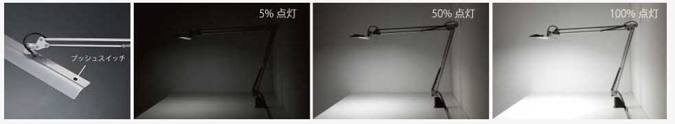5%の僅かな明るさから微妙な強さの明るさまで自由に明るさを選択できる無段調光機能です。2回クリックで瞬時に100%点灯にシフトできます。