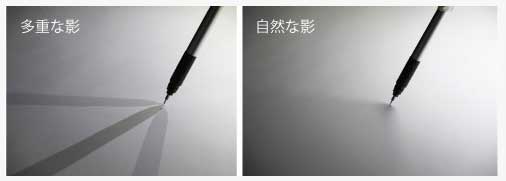 鋭いLEDの光は強い明暗を生み、多重の影によって作業に悪影響を与えることがありますが、ゼットライトは柔らかい影の使いやすい光を追求しました。
