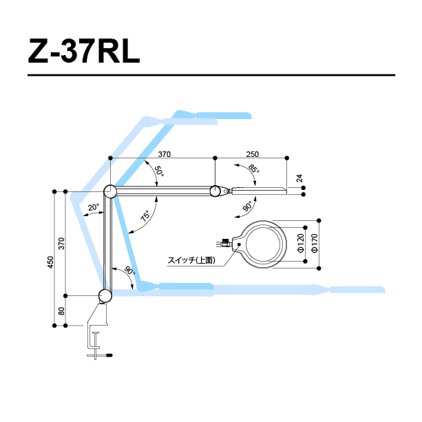 Z-37RL Z-Light(ゼットライト) デスクライト 拡大レンズ付 連続調光 山田照明