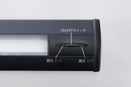 真ん中に ON/OFF スイッチ、両端に調光スイッチを設置。(5 段階調光)
