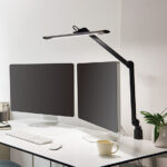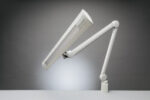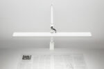圧迫感のない薄型シェードは約600mm。スマートなフォルムから広範囲な光が広がります。バネが露出しないのでお手入れも簡単です。平行移動するアームヘッドは従来品より可動範囲が広くなりました。