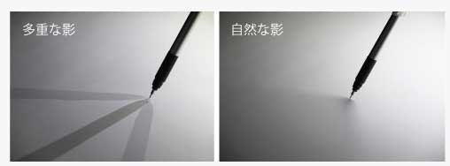 鋭いLEDの光は強い明暗を生み、多重の影によって作業に悪影響を与えることがありますが、ゼットライトは柔らかい影の使いやすい光を追求しました。