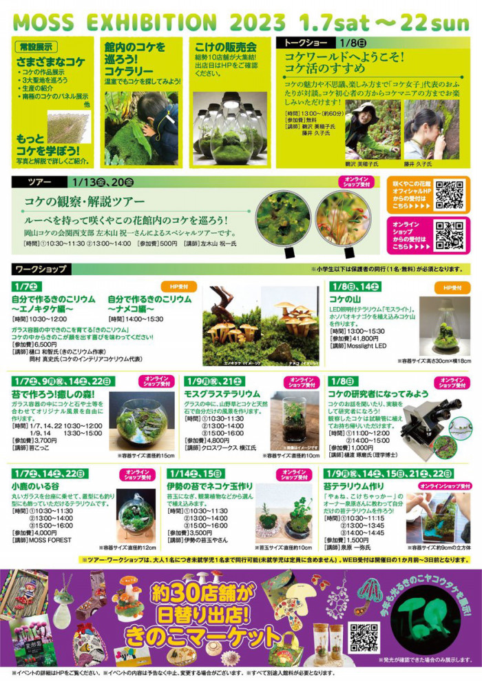 2023年1月7日~22日 咲くやこの花館 こけ展 2022年12月26日 投稿者:lecielweb Mosslight-モスライト イベント情報 2023年1月7日~22日 会場:咲くやこの花館 咲くやこの花館:こけ展